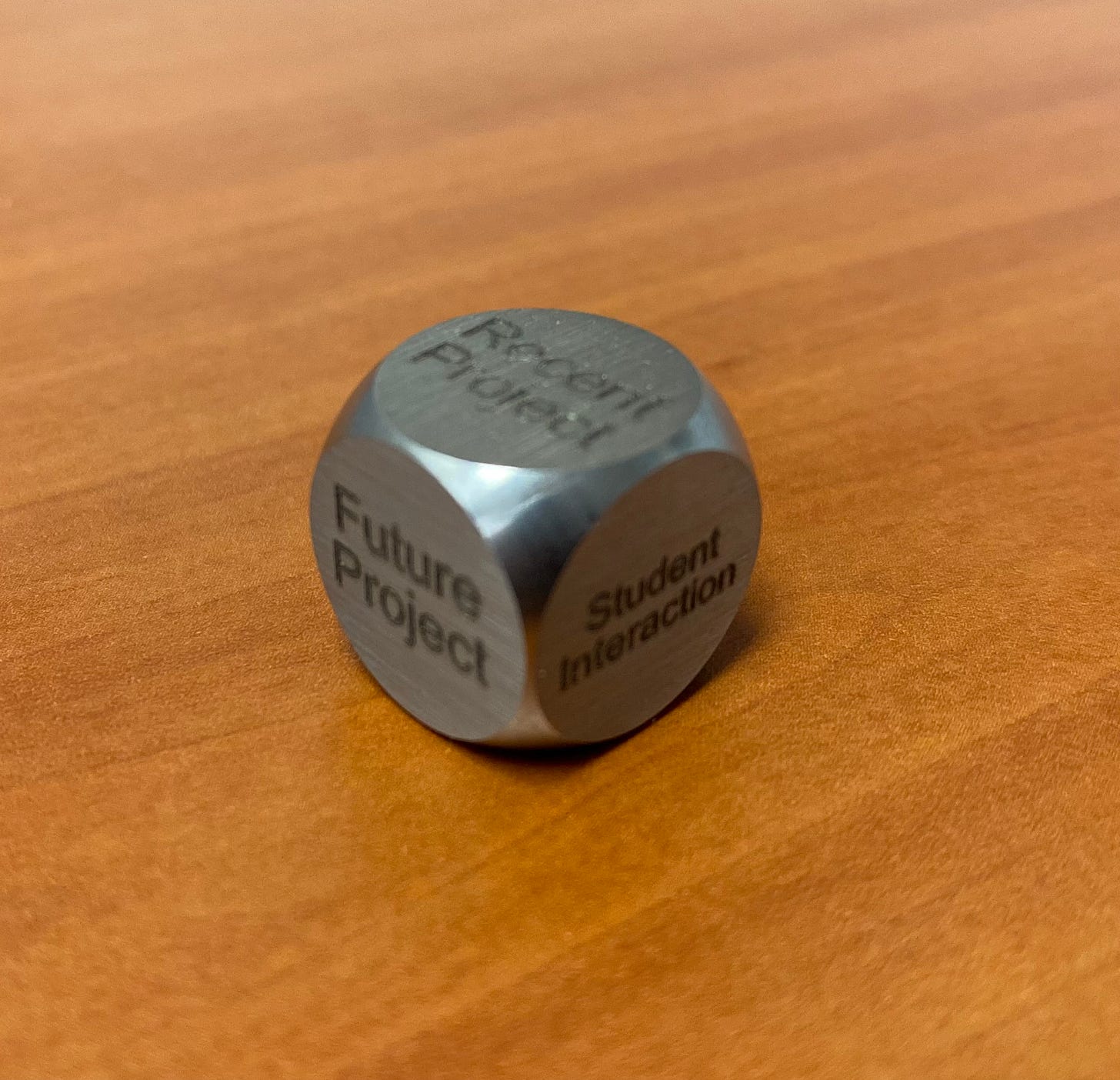 To help crowdsource information, I even had a custom die made as part of a game for our fundraising team using these points, which we break out before social events, and even try to use weekly.
